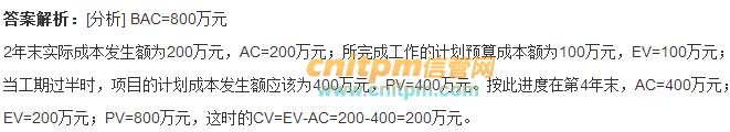 AC=200 PV=400 EV=100 CPI=EV/AC=0.5