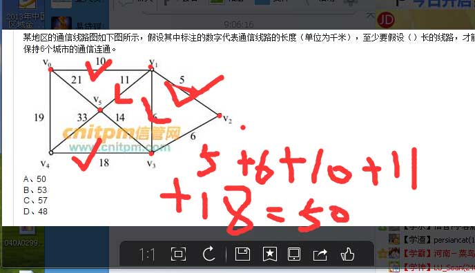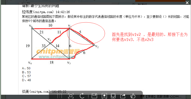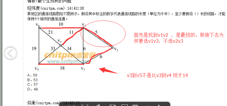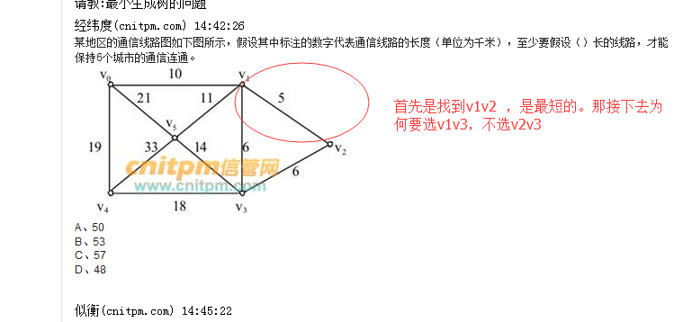 V2~V3和V1~V3是两个选一个都可以啊,最短原理,所有的能连接一遍就可以了。问题是这个 很明显存在问题,v0~v4这条线是多余的,还有是V1~V5比V3~V5短,为什么不取短的要取长的?