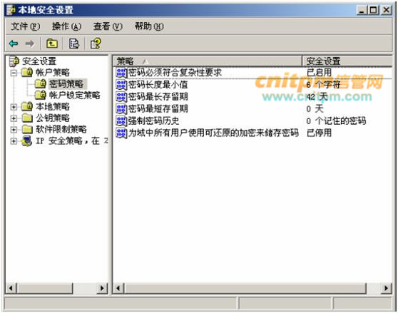 在Windows Sever 2003系统中,用户分为本地用户和域用户,本地用户的安全策略用“本地安全策略”设置,域用户的安全策略通过活动目录管理。