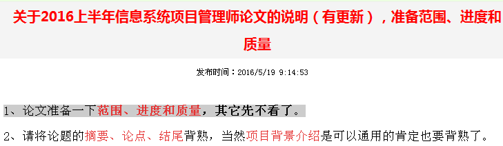论文我们在考前一个月给出的YT里面就YZ了范围管理这个论题,并在考前一直强调重点准备范围、进度,通过我们的YT和批阅,培训学员论文应该不成问题。