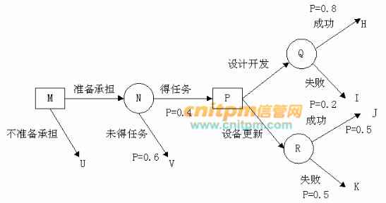 决策树分析采用决策树图表进行分析,它描述了每一种可能的选择和这种情况发生的概率。如下图: