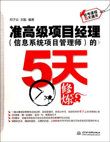 准高级项目经理(信息系统项目管理师)的5天修炼,由邓子云、刘毅编著,虽然书名说5天修炼,但要想真正5天掌握,还是有难度的,不过该书的一些总结还是不错的。