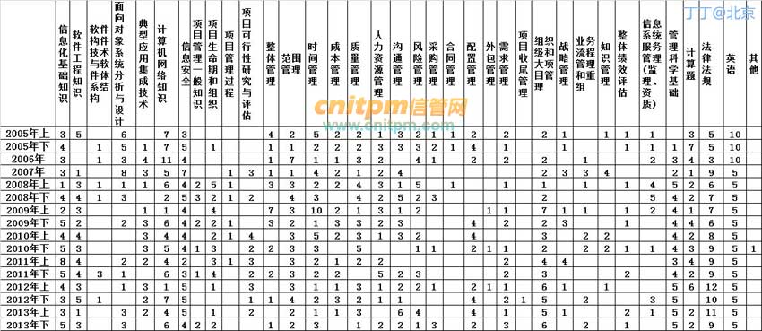 信息系统项目管理师05-13年真题知识点分布表