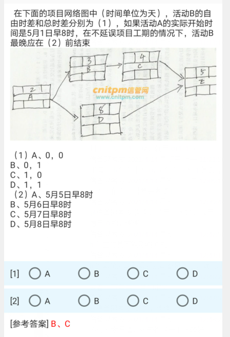 b的紧前活动和紧后活动都是1个,就可以判断他的自由时差是0