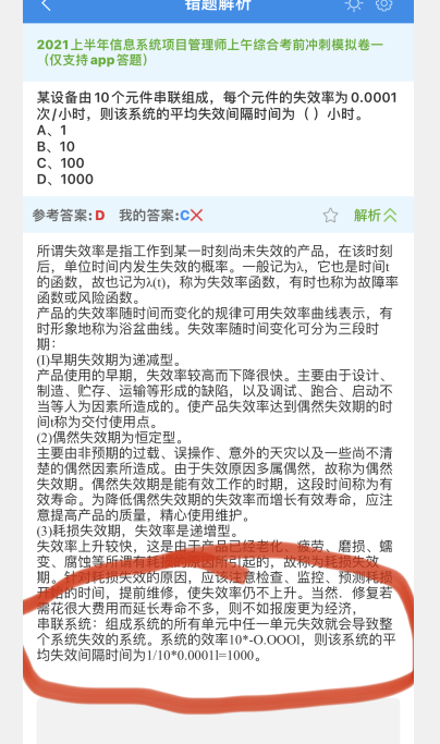 我感觉不用那么理解吧,我理解的就是10个串联一起每个都是0.0001,那10个就是0.001=千分之一,那就是说整个是千分之一的故障率,反过来不就是间隔1000小时么