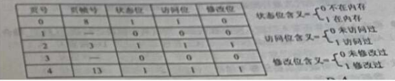 25.进程P有5个页面,页号为0-4,页面变换表及状态位、访问位和修改位的含义如下图所示,若系统给进程P分配了3个存储块,当访问的页面3不在内存时,应该淘汰表中页号为()的页面。