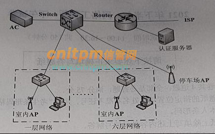 某单位由于业务要求,在六层的大楼内同时部署有线和无线网络,楼外停车场部署无线网络。网络拓扑如图1-1 所示。