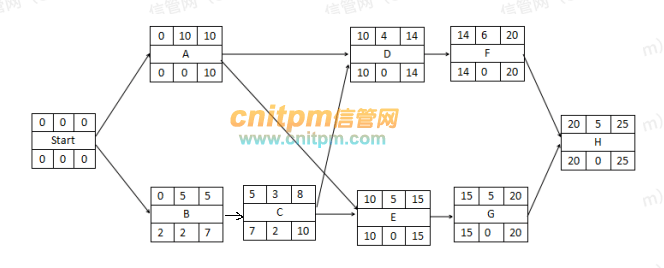其中,各活动正常完工时间、正常完工直接成本、最短完工时间、赶工增加直接成本(如下表所示)。另外,项目的间接成本为500元/天。