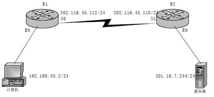 4、 网络连接如下图所示,要使计算机能访问到服务器,在路由器r1中配置路由表的命令是 ( ) 。
