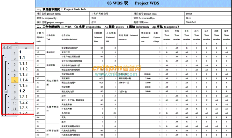 就是针对大型,比较复杂的项目用表格的形式,如下图创建WBS工作分解结构