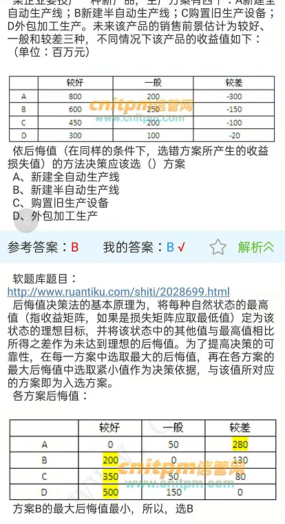 不是看相加的值,是看A、B、C、D那一行里面最大后悔值里面最小的那个