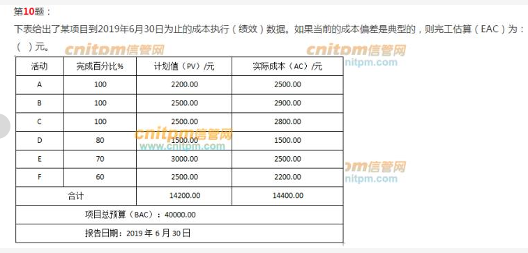 EAC是在项目执行过程当中,根据现有实际进展情况,估算项目结束收尾时的总成本。根据发生的偏差的类别,典型偏差和非典型偏差, 采用不同的计算公式,具体公式可查看JRS直播辅导资料。
