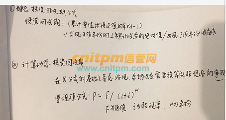 这个是需要掌握的,净现值和投资回收期内容在教材整体管理部分。动态投资回收期和静态投资回收期公式,请参考如下: