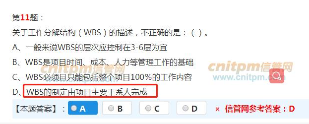 (7) WBS的编制需所有(主要)项目干系人的参与, 需要项目团队成员的参与