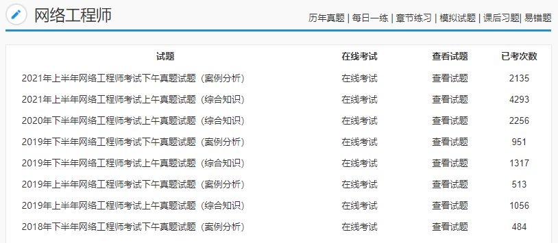 为助力广大网络工程师考生通过考试,JRS直播设置了“考试中心”栏目,供广大考生在线做题练习,包括历年真题、每日一练、章节练习、模拟试题、课后习题、易错题等服务,考生可以根据个人需要进行选择。