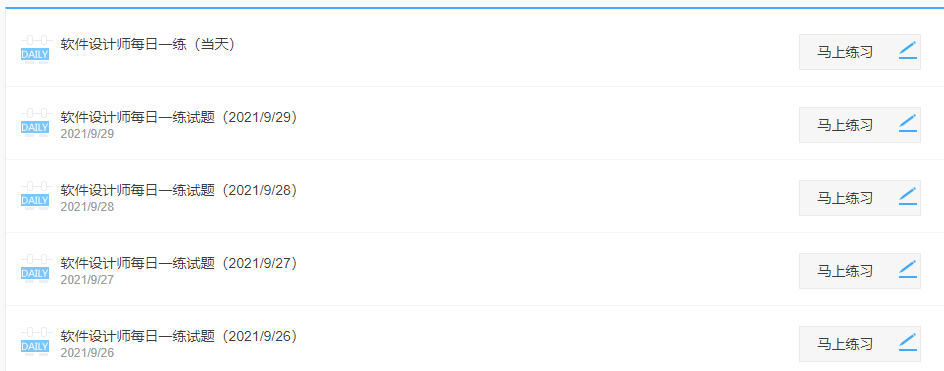 软件设计师考试中心为考生提供每日一练、章节练习、历年真题、模拟试题、课后习题、易错题、考前点题、模考大赛等服务。