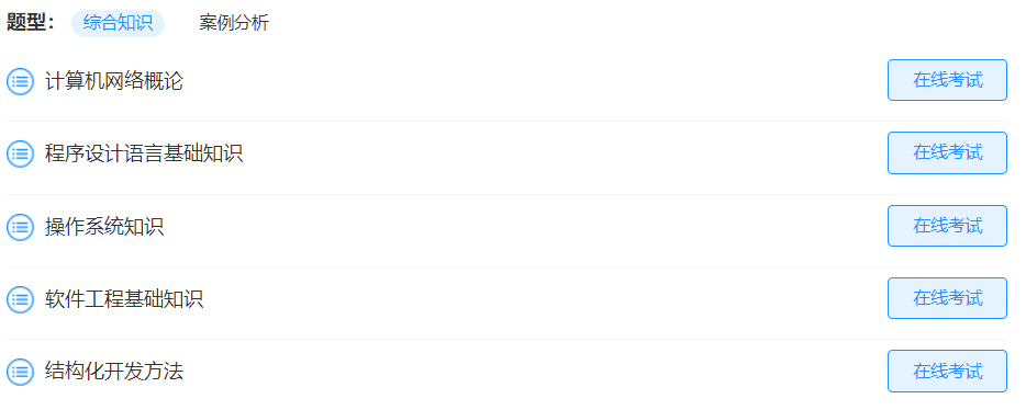 “软件设计师章节练习”栏目根据《软件设计师教程》章节进行划分,《基础知识》包括计算机网络概论、程序设计语言基础知识、操作系统知识、软件工程基础知识、结构化开发方法、网络与信息化安全基础知识、数据库技术基础、数据结构、算法设计与分析、面向对象技术、标准化和软件知识产权基础知识、软件系统分析与设计、英语共十三个章节,《案例分析》包括外部设计、内部设计、数据库应用分析与设计、程序设计、系统实施、软件工程应用6个章节,考生可以根据个人需求选择进行练习。
