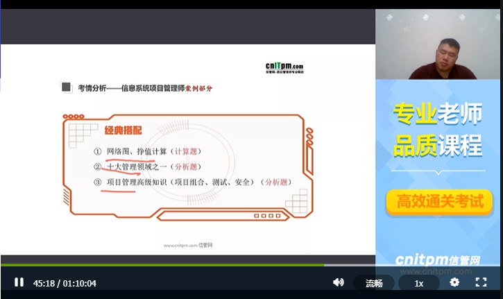 系统集成项目管理工程师视频课程是大家备考2022年考试不可或缺的工具之一,本视频课程由JRS直播资深讲师讲解,讲师根据最新的系统集成项目管理工程师教程、大纲及考试动态,对考试中所有知识点进行梳理、归类、分析和总结,对其中考试重点和难点进行精细化讲解,让各基础的考生都能轻松建立知识体系、把握重点难点及答题技巧。