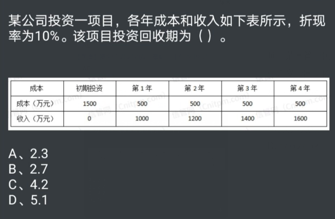 投资回收期法计算方法,若各年的现金净流量相等:投资回收期(年)=投资总额÷年现金净流量。若各年的现金净流量不相等:投资回收期(年)=n+(第n年年末尚未收回的投资额/第n+1年的现金净流量)。