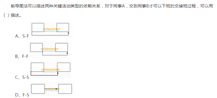 ①F-S型是指结束开始的关系,只有当前序活动结束后,后续活动才能开始。