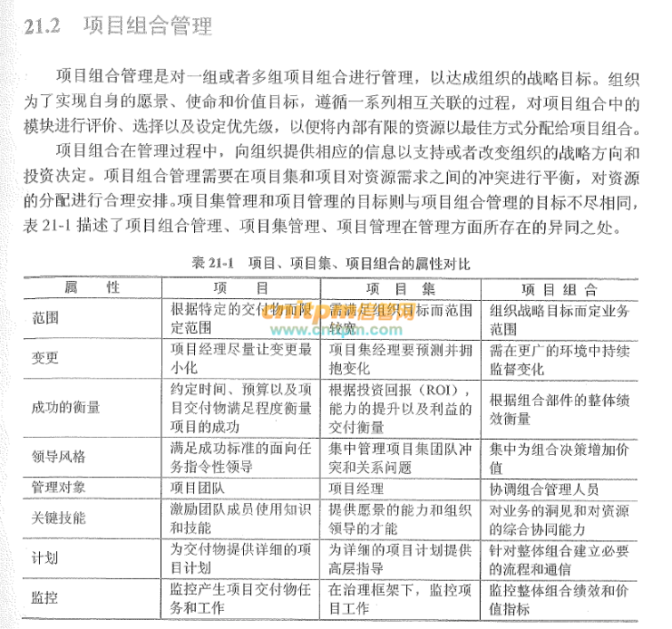 项目组合是将项目、项目集,以及其他方面的工作内容组合起来进行有效管理,以保证满足组织的战略性的业务目标。这些组件是可量化的,也就是说可以被度量、排序以及分优先级。