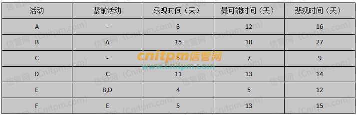 33、下图表示某项目各个活动关系及乐观、最可能、悲观完成时间,假设各活动的三种完成时间服从β分布,按照三点估算法该项目标准差为3.2天,则项目在()完成的概率为95%。