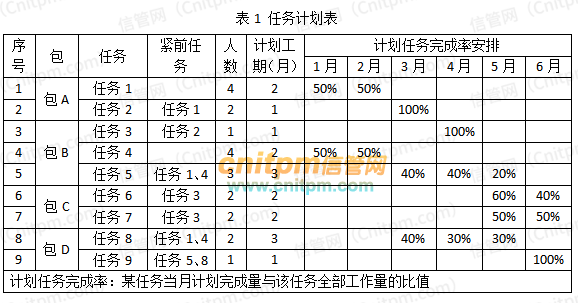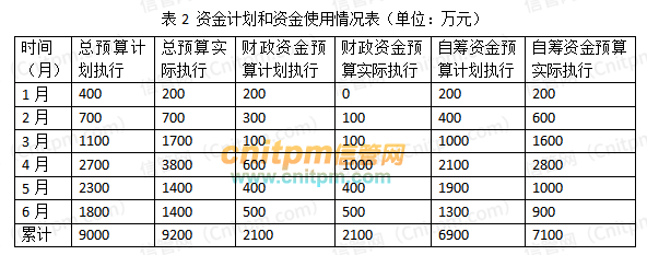 某项目的任务计划表如表1所示,资金计划和资金使用情况表如表2。