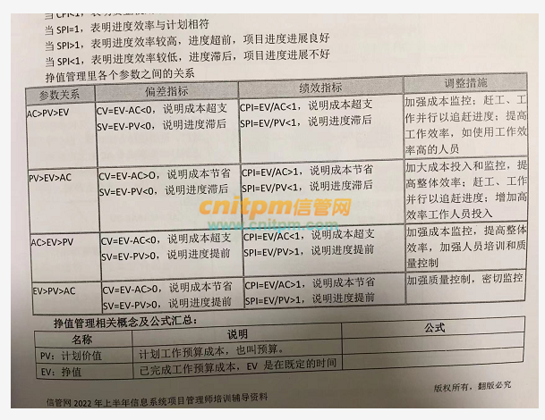 信息系统项目管理师挣值计算里各个参数之间的关系
