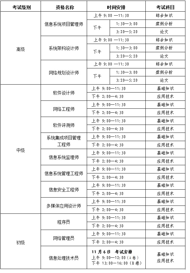 一、2022年度计算机技术与软件专业技术资格(水平)考试(初级、中级、高级)上半年考试日期为5月28日、29日,下半年考试日期为11月5日、6日。详见2022年上半年计算机资格考试安排(附表一)和2022年下半年计算机资格考试安排(附表二)。