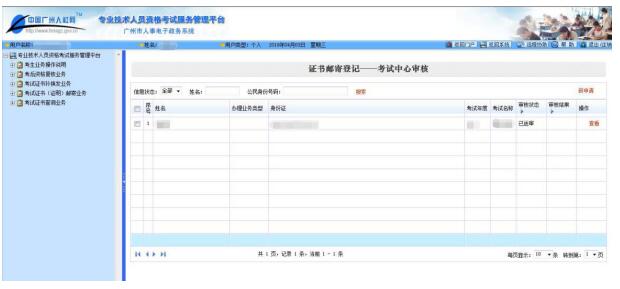 第三步:进入系统后,在界面左侧选择“考试证书(证明)邮寄业务”下的“证书邮寄登记”。