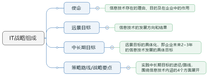 IT战略组成:使命、远景目标、中长期目标、策略路线/战略要点