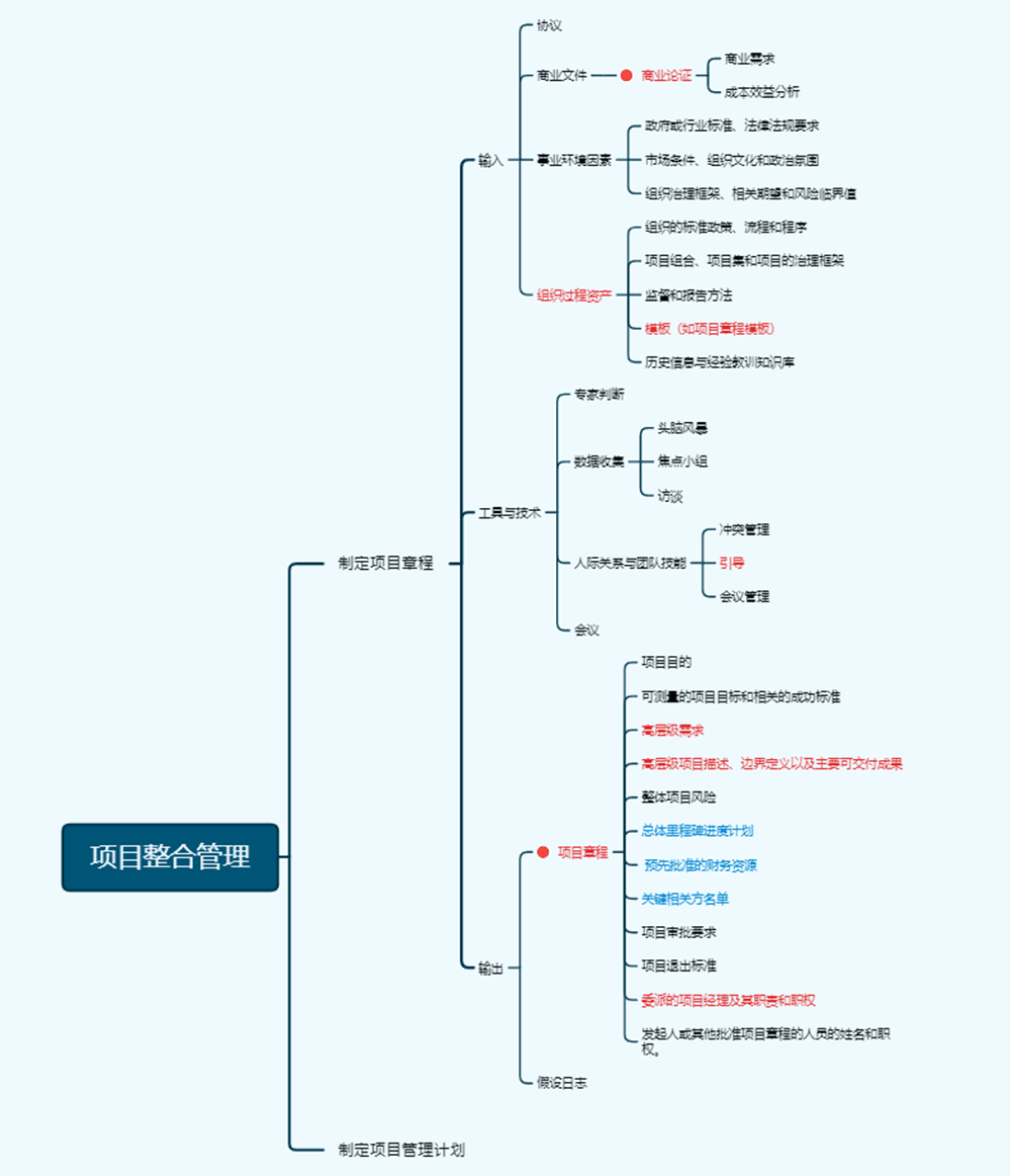 项目管理知识体系指南(PMBOK指南)是我国PMP®考试官方指定教材,也是项目管理知识与实践领域的事实上的世界标准。全文共有三大部分,第一部分为主要章节,共有12板块,下图为第一部分的第四章项目整合管理制定项目章程的内容概括