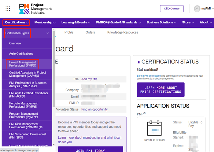 1、通过 www.pmi.org, 填写用户名和密码登陆
