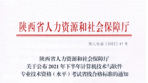 根据陕西人力资源和社会保障厅发布的《关于公布2021年下半年计算机软件资格(水平)考试省线合格标准的通知》可以得知,根据省内标准,达到以下分数即为合格。