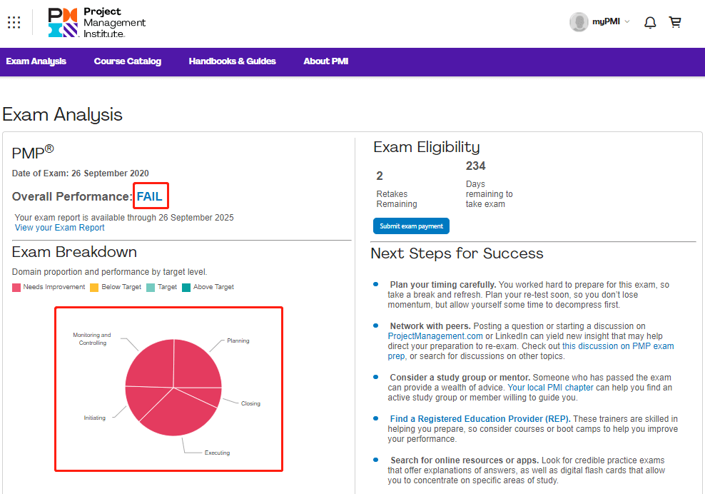 4、进入认证页面,这也是大家申请PMI®认证时的页面,如果看到了'PMP® Number'就表示通过了,PMP® Number'是你的证书编号。页面显示"You may now submit payment for your PMP® credential",表示没有通过。