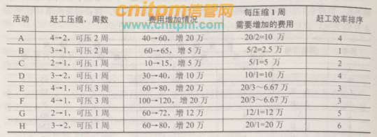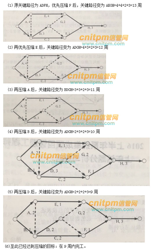 压缩有原则的,每次必须在关键路径上压缩,也就是先把关键路径压缩到和其他非关键路径一样的天数之后,再开始同时压缩关键和非关键。如2015年下半年系统集成项目管理工程师案例题