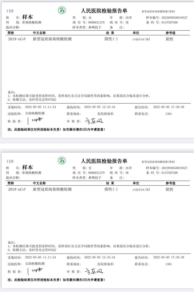 一、核酸检测报告截图(姓名栏不得隐藏)