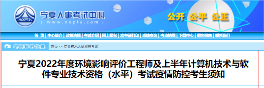根据当前我区疫情防控要求,为做好宁夏2022年度环境影响评价工程师及上半年计算机技术与软件专业技术资格(水平)考试工作,确保考试安全顺利,现将有关事项告知如下。