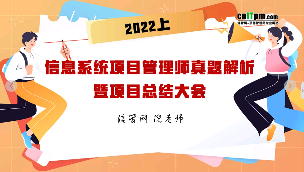 信息系统项目管理师2022上半年考试将于5月28日开考,考试结束后5月29日晚上19:30分,JRS直播资深老师将专业解析2022年上半年信息系统项目管理师真题,与考生朋友们在线估分对答案,本次公开课完全免费,欢迎广大考生观看。