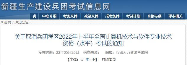 关于取消兵团考区2022年上半年全国计算机技术与软件专业技术资格(水平)考试的通知