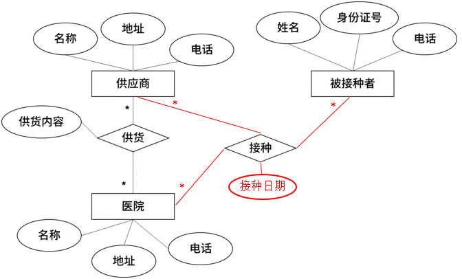 接种(接种者身份证号,(b),医院名称、供应商名称)