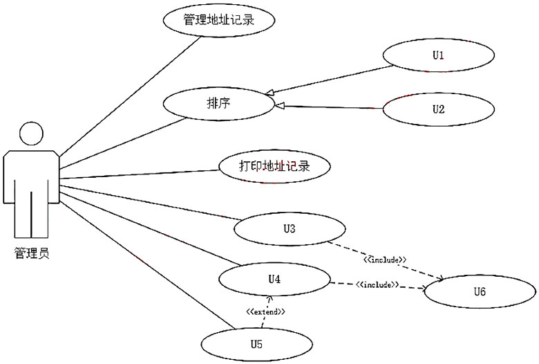现采用面向对象方法分析并设计该地址簿管理系统,得到如图3-1所示的用例图和图3-2所示的类图。