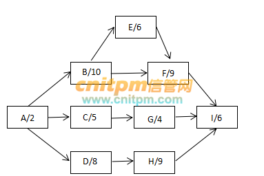 下图(单位:周)为某项目的进度网络图,项目各项工作顺序及工作时长如图所示,活动D的总浮动时间和自由浮动时间分别为(44),该项目工期为(45)