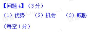 请将下面(1) ~ (3)处的答案填写在答题纸的对应栏内。SWOT技术从项目的每个(1)、劣势、(2)和(3)出发,对项目进行考察,把产生于内部的风险都包括在内,从而更全面的考虑风险。