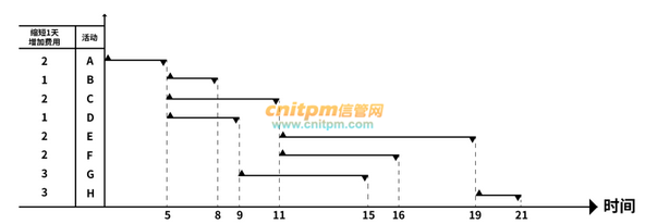 不考虑间接费用和人力资源,项目经理想通过赶工的方式提前一天并成本最低地完成项目,他应该压缩哪些活动的工期?请给出选择依据。