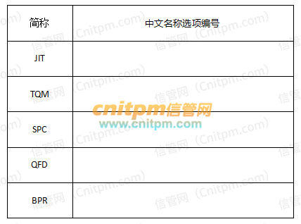 请将下列表中质量管理技术简称所对应中文名称的选项编号填入答题纸对应栏内。