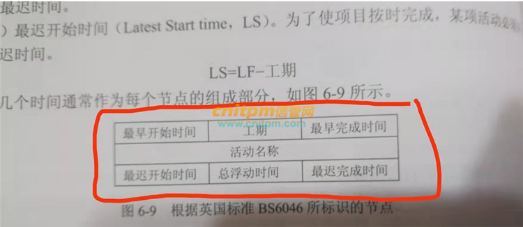 上面一排左面是最早开始时间中间是历时,右面是最早结束时间