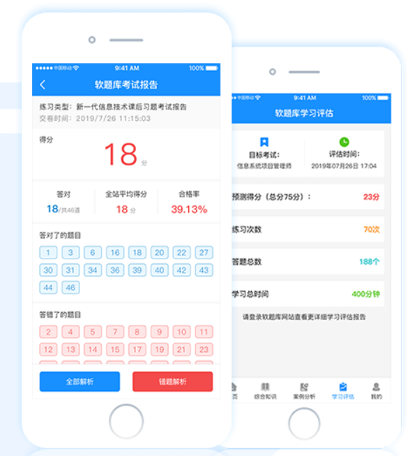 根据海量用户做题成绩智能化分析判断数据,分析错题,易错知识点, 历年真题出题机率,预测考点、考题、命题趋势,全维度对考试内容进行汇总分析,做的就是最接近考试的试题,给出个人学习评估报告,预测成绩。