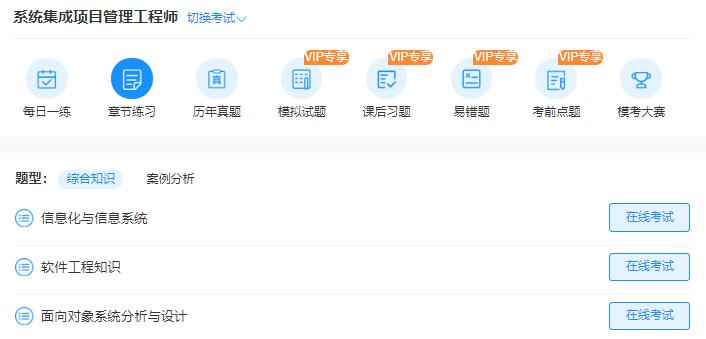 系统集成项目管理工程师2022年下半年章节练习栏目根据《系统集成项目管理工程师教程》章节进行划分,同时按考试科目分为不同章节。