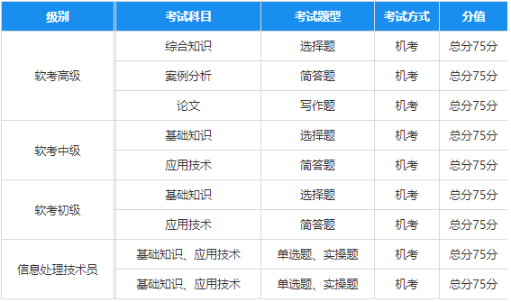 其中,高级除了信息系统项目管理师外,其他都是一年只考一次,中级除了系统集成项目管理工程师、网络工程师、软件设计师、信息系统监理师外,其他都是一年考一次,初级除了信息系统运行管理员一年考一次,其他都是一年考两次。